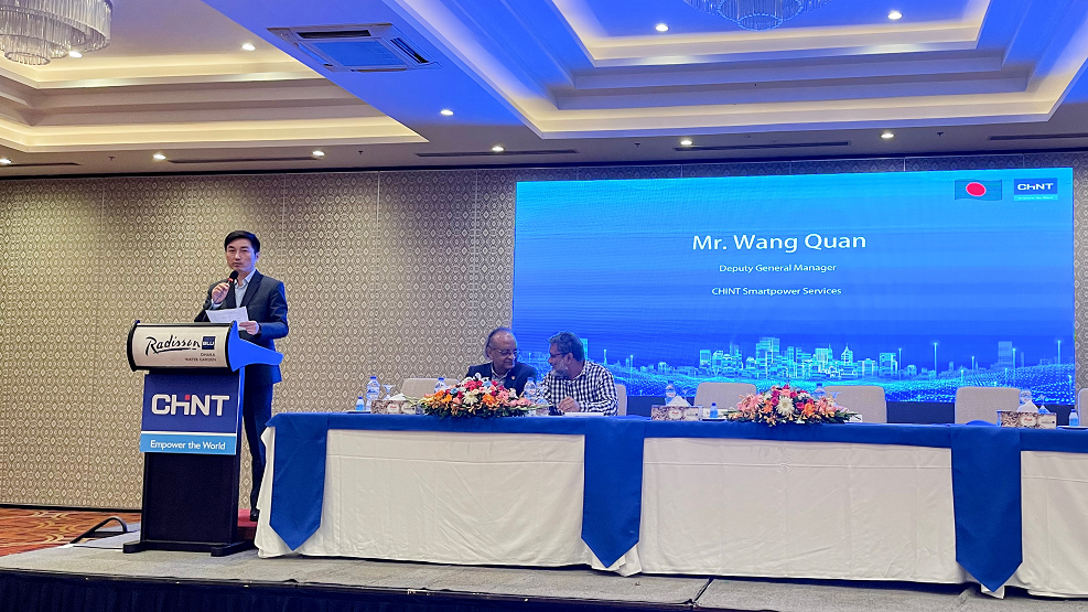 Mr. Wang Quan, as DGM of CHINT Solar Strategy & Development Center and MD of CHINT Smartpower Services, made the opening speech. On behalf CHINT, he expressed the gratitude to all relevant parties in Bangladesh for their supports and concerns to CHINT. Besides, he also made the formal announcement of CHINT Smartpower Services' deployment in Bangladesh, as Operation & Maintenance Service provider to all the renewable projects in the country.