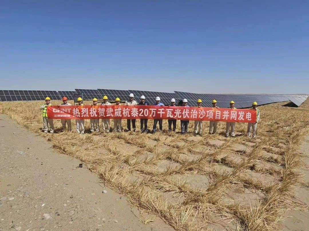 甘肅省武威市涼州區(qū)九墩灘光伏治沙示范園區(qū)位于騰格里沙漠邊緣,長(zhǎng)期遭受沙害困擾,但同時(shí)這里的太陽(yáng)能資源豐富,可利用日照時(shí)間長(zhǎng),屬于國(guó)家Ⅰ類(lèi)太陽(yáng)能資源地區(qū),是發(fā)展光伏產(chǎn)業(yè)的“良田”。正泰新能源充分利用沙區(qū)土地、太陽(yáng)輻射等資源優(yōu)勢(shì),走出一條沙漠治理與產(chǎn)業(yè)發(fā)展雙贏的新路子。項(xiàng)目自2022年8月開(kāi)工建設(shè),建設(shè)期間,積極應(yīng)對(duì)沙漠中嚴(yán)寒、酷暑以及極端天氣等諸多不利因素,制定完善的解決方案,確保各項(xiàng)建設(shè)任務(wù)穩(wěn)步推進(jìn),并于近日實(shí)現(xiàn)并網(wǎng)。