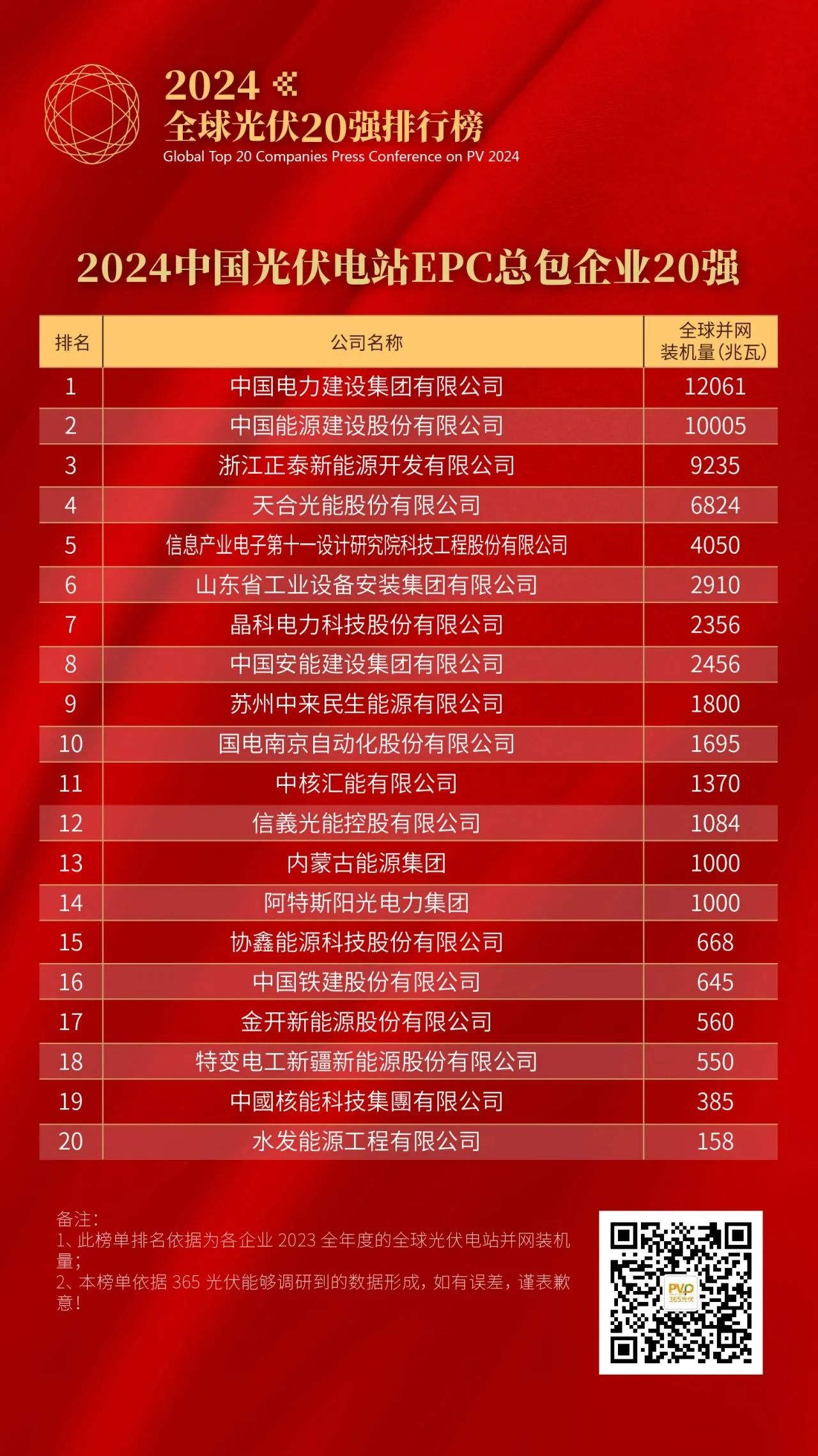 “用數據看發(fā)展,以業(yè)績證實力”。近日,由365光伏、365儲能及智慧能源發(fā)起并主辦的“2024全球光伏20強、中國儲能20強排行榜”在上海成功發(fā)布。正泰新能源榮登2024年中國光伏電站投資企業(yè)20強榜單第8名;2024年中國光伏電站EPC總包企業(yè)20強榜單第3名。